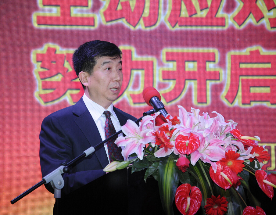 姚紅專(zhuān)董事長(zhǎng)、苗立總經(jīng)理為2014年度被評(píng)為“銷(xiāo)售明星”的人員頒獎(jiǎng)