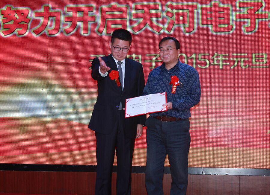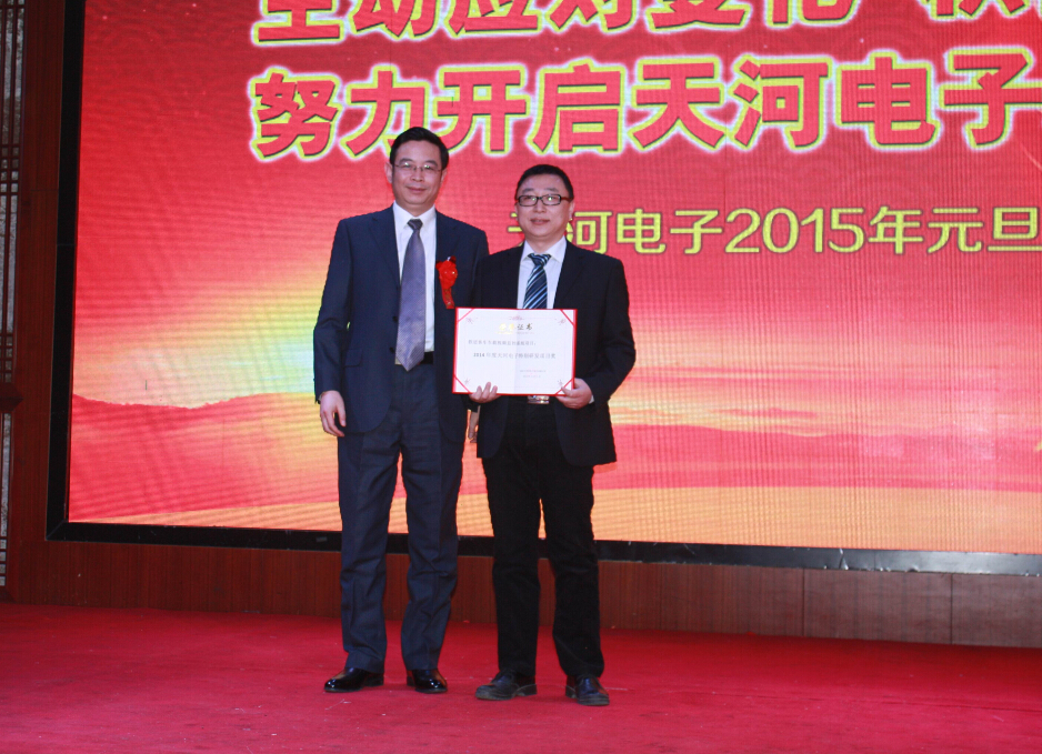 2014年12月31日下午4時(shí)整,天河電子2015年元旦晚會(huì)在星光大酒店二樓場(chǎng)鑫軒隆重舉行,大會(huì)表彰了2015年度在市場(chǎng)、研發(fā)、工程等領(lǐng)域作出突出貢獻(xiàn)的優(yōu)秀團(tuán)隊(duì)和個(gè)人。公司總經(jīng)理苗立在會(huì)上做了重要講話(huà),總結(jié)了2014年我們所做出的成績(jī)和不足,分析了公司目前所處的內(nèi)外形勢(shì),并為公司2015年的工作指明了方向。
