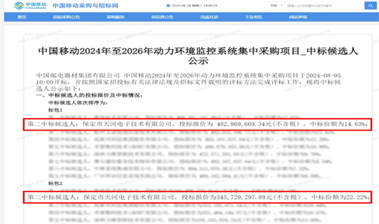 天河電子中標(biāo)中國移動2024-2026動環(huán)監(jiān)控集采項目