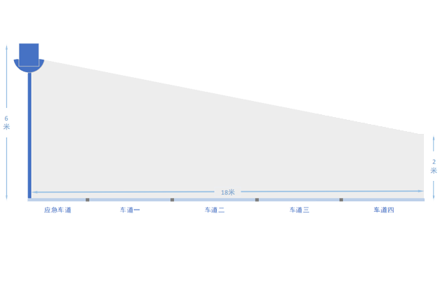 與傳統(tǒng)的檢測方式只覆蓋單車道不同,本系統(tǒng)可以覆蓋多條車道。